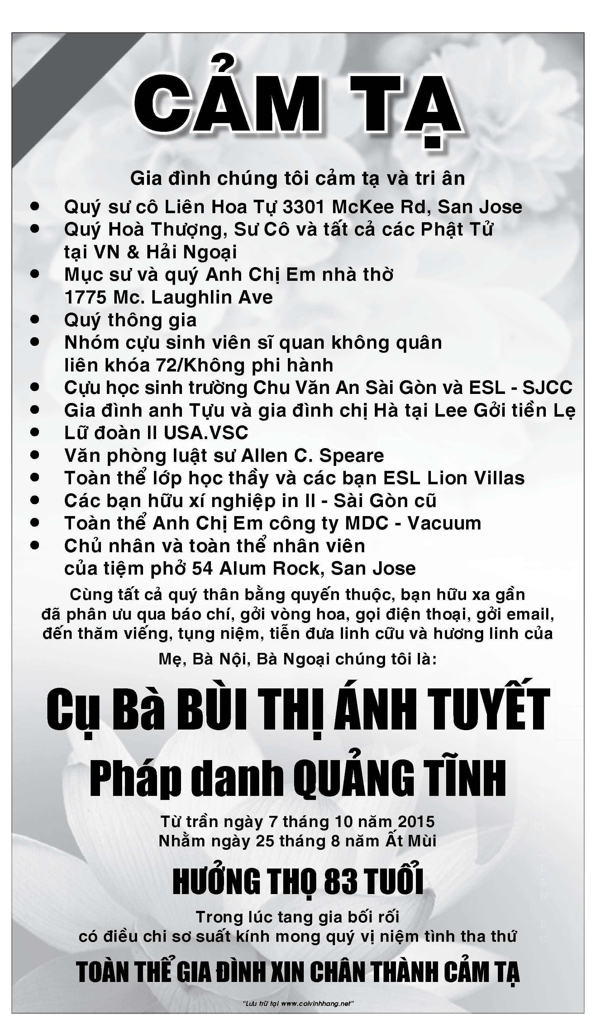 CÁO PHÓ – PHÂN ƯU – CẢM TẠ