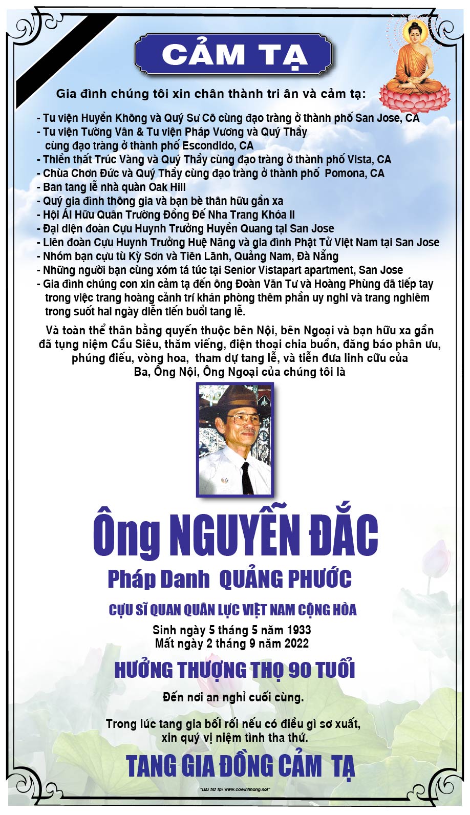 CÁO PHÓ – PHÂN ƯU – CẢM TẠ