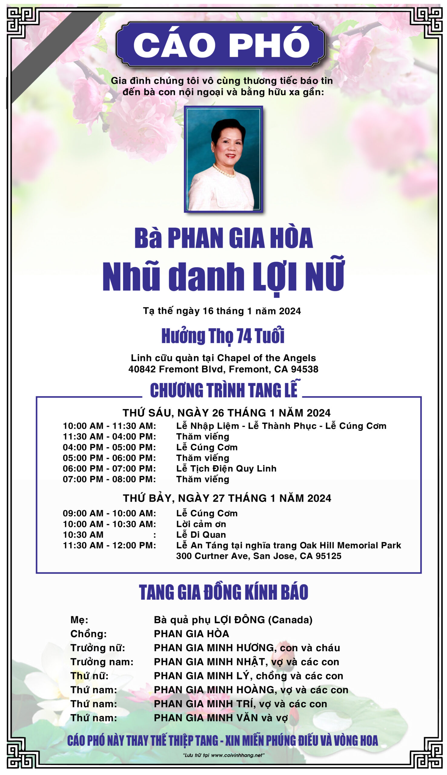 CÁO PHÓ – PHÂN ƯU – CẢM TẠ