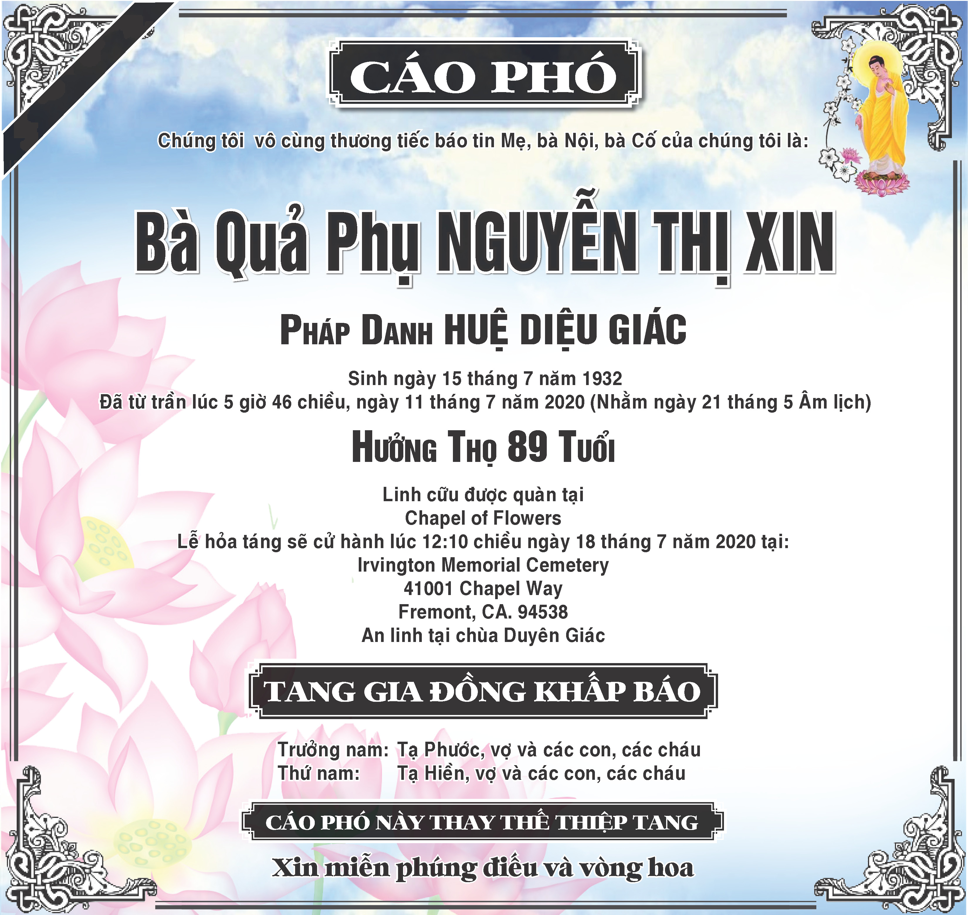CÁO PHÓ – PHÂN ƯU – CẢM TẠ