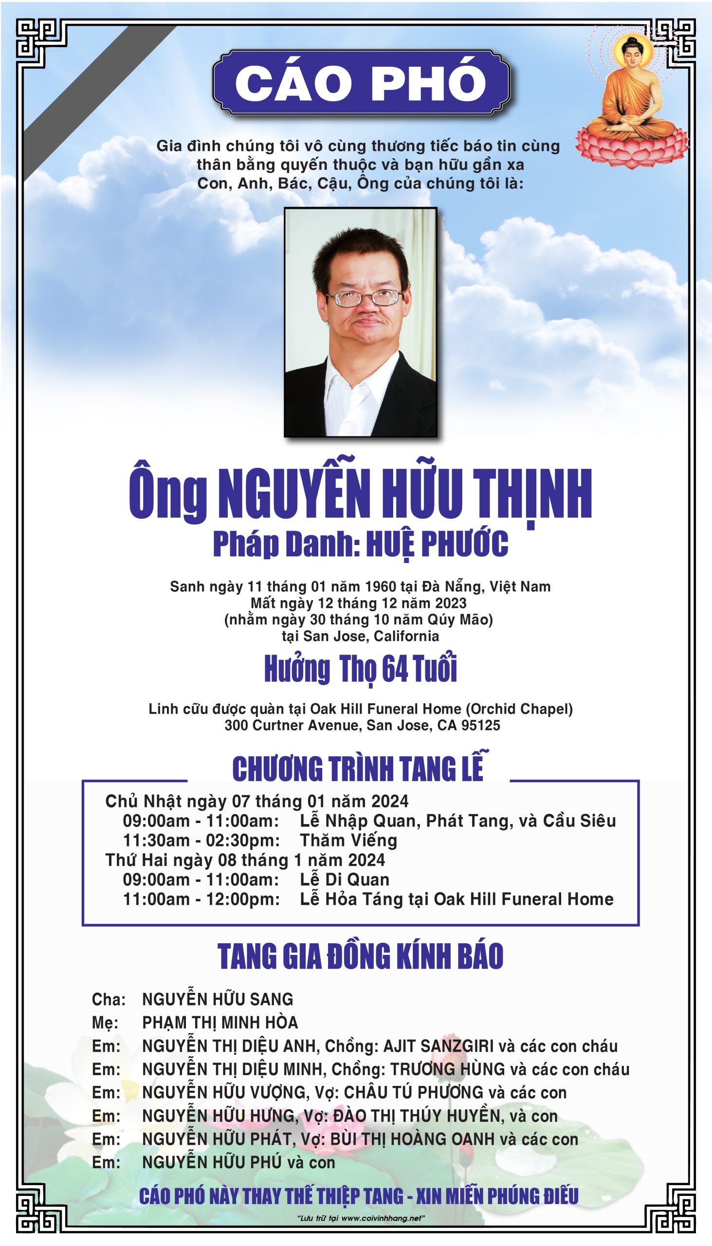 CÁO PHÓ – PHÂN ƯU – CẢM TẠ