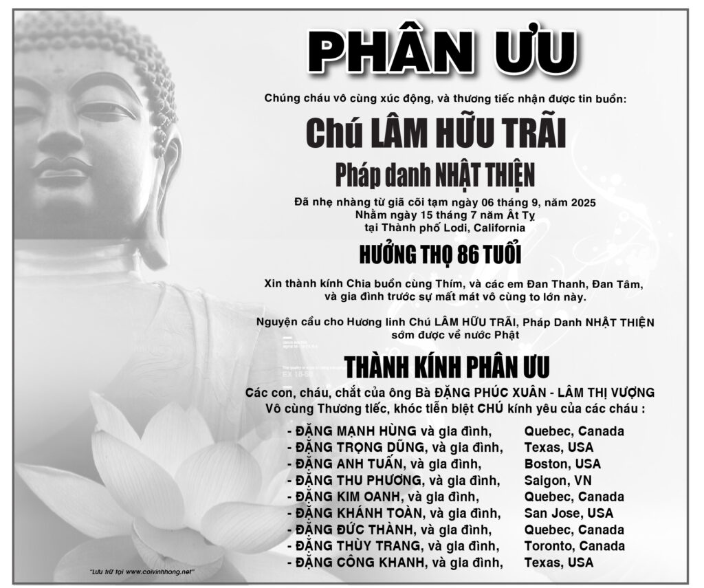 Các con cháu chắt ông bà Phạm Phúc Xuân phân ưu cùng GĐ Lâm Hữu Trãi