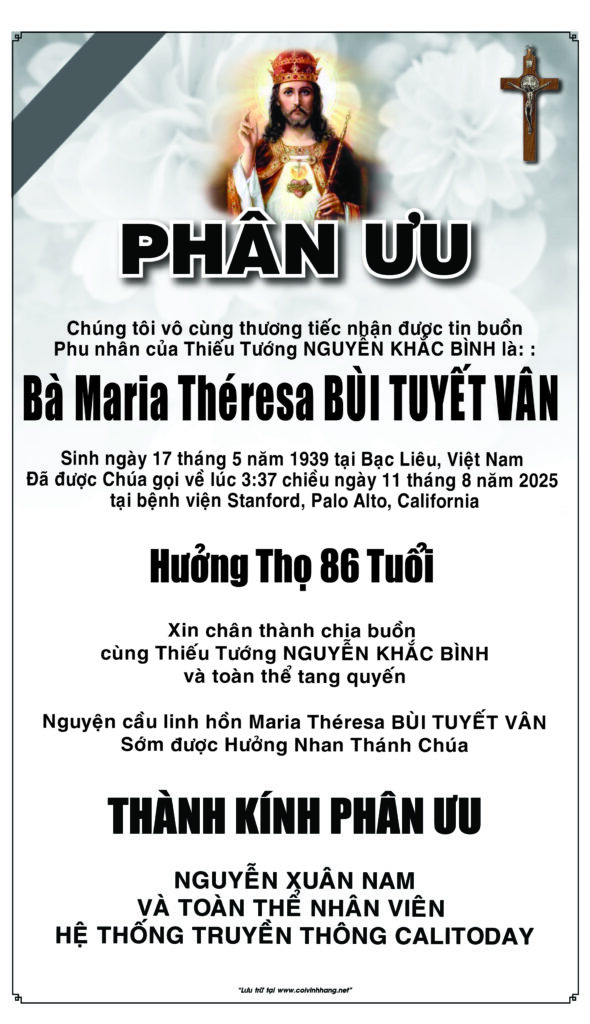 Calitoday phân ưu cùng GĐ Bùi Tuyết Vân