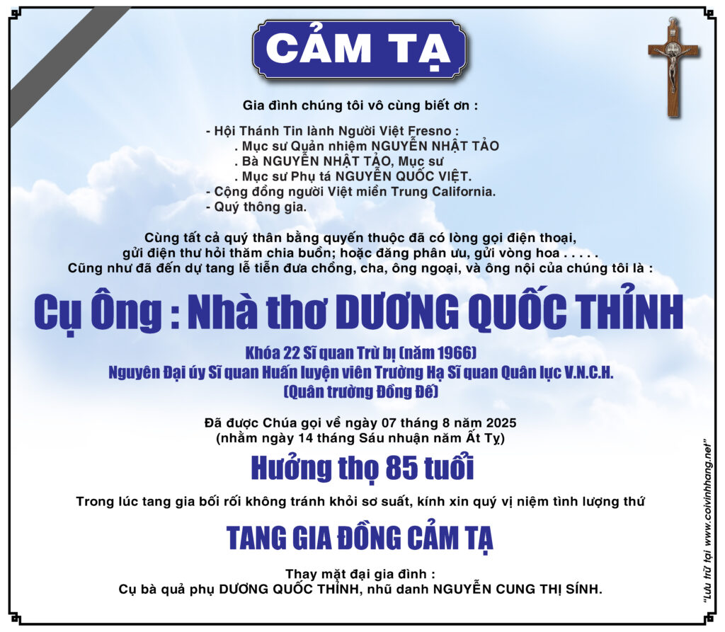 Cảm tạ của GĐ Dương Quốc Thỉnh