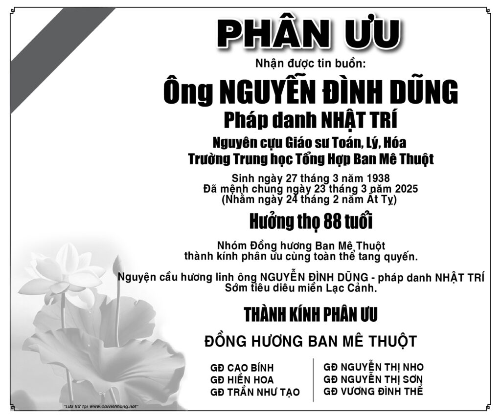 Đồng hương Ban Mê Thuột phân ưu cùng GĐ Nguyễn Đình Dũng