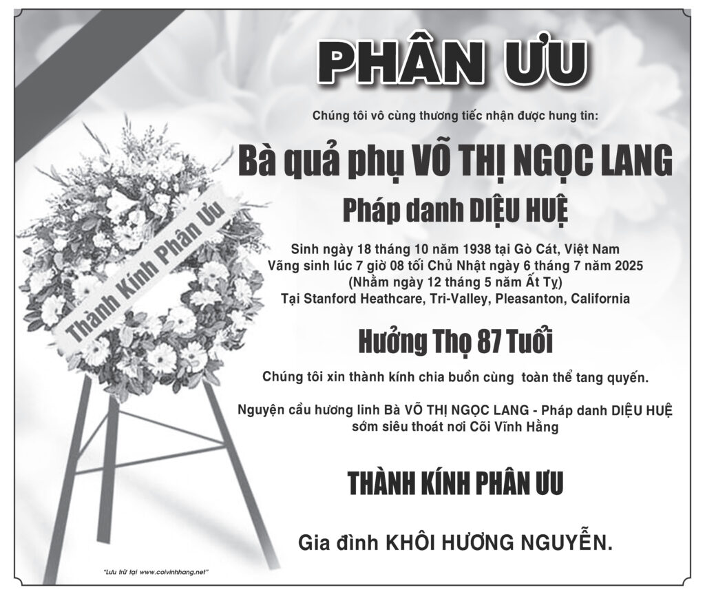 GĐ Khoi Hương Nguyễn phân ưu cùng GĐ Võ Thị Ngọc Lang
