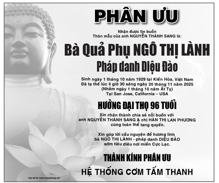 Hệ thống Cơm Tấm Thanh phân ưu cùng GĐ Ngô Thị Lành